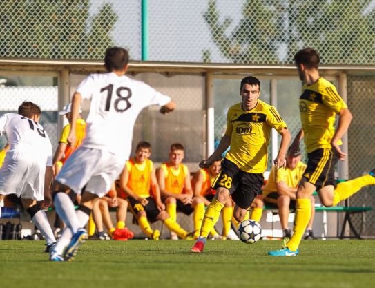 El marcador fue abierto en el primer ataque peligroso del partido, lo que ocurrió sólo a 22 minutos. Los huéspedes han ganado el derecho a un estándar. Denis Makogonenko no reacciono bien al primer tiro y heroicamente jugo en el segundo disparo, pero no fue suficiente. Nicholai Kotruce mando el balón en la puerta . Por lo tanto los anfitriones aturdidos inmediatamente hicieron varios intentos de igualar. Andrei Kobec perdió una gran oportunidad dando en el portero. Inmediatamente Vladislav Satalkin con la cabeza no dio en el blanco desde fuera de la porteria . Seis minutos antes del descanso Igor Bondarenko entro otra vez en el area penal y fue hechado al suelo por su oponente. Eugene Oancease ofreció para llevar a cabo una sanción , que venció portero de los rivales.